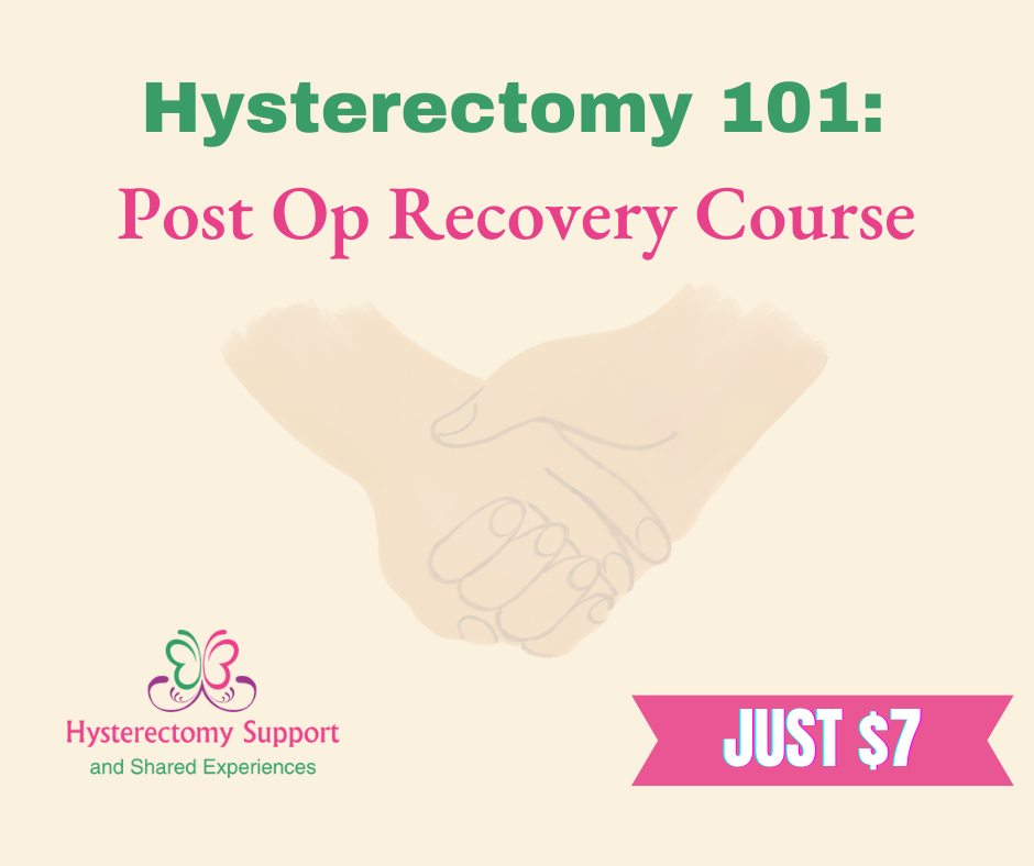 The Hysterectomy 101: Post Op Recovery Course is the perfect way to prepare for your recovery.
